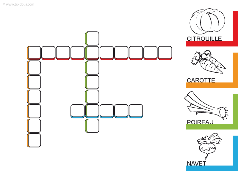 Fruits et légumes est un jeu gratuit à imprimer pour que les enfants manipulent les mots, les noms des fruits, les noms des légumes leur orthographe. Coloriages codes, coloriages magiques, decoupage, graphisme, mots croises, mot caches, mots fleches, sudoku, labyrinthes, points a relier, point a point, erreurs, differences, dessins a reproduire mots croisés à imprimer. Ces mots mêlés à imprimer permettent l'apprentissage de vocabulaire lié à la cuisine, par le biais de quinze mots faisant parti de ce champ lexical. Pois, carotte, aubergine, chou, poireau, cornichon, champignon, poivron, ail, artichaut, brocoli. A l'aide des images, complète les grilles.